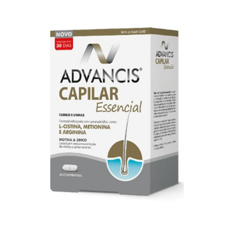 Advancis Capilar Essencial 60 comprimidos, é um suplemento alimentar, com uma fórmula completa e equilibrada. Contém proteína de soro do leite, utilizada pelo relevante teor em aminoácidos. A sua fórmula contém ainda um extrato de videira vermelha, zinco e vitaminas do complexo B.