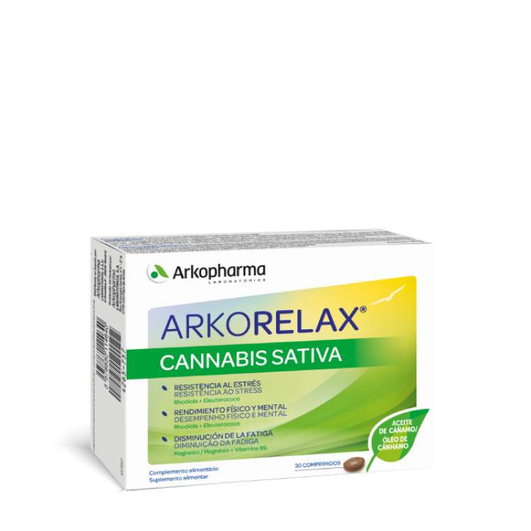 Arkorelax Cannabis Sativa ajuda de forma natural a manter a calma durante os períodos de stress, respeitando o equilíbrio natural do corpo, graças à associação de 2 plantas adaptogénicas (Rhodiola e Eleutherococcus), Magnésio e Vitamina B6 e óleo de semente de cânhamo. Contempla Rhodiola e Eleutherococcus que ajudam a aumentar a resistência do corpo ao stress temporário, contribuindo para o bem-estar emocional e o desempenho físico e intelectual. O magnésio e a vitamina B6 ajudam a reduzir o cansaço e a fadiga e a manter o funcionamento normal do sistema nervoso. O óleo de semente de cânhamo é reconhecido por sua contribuição equilibrada de ativos nutricionais, especialmente ácidos graxos essenciais.