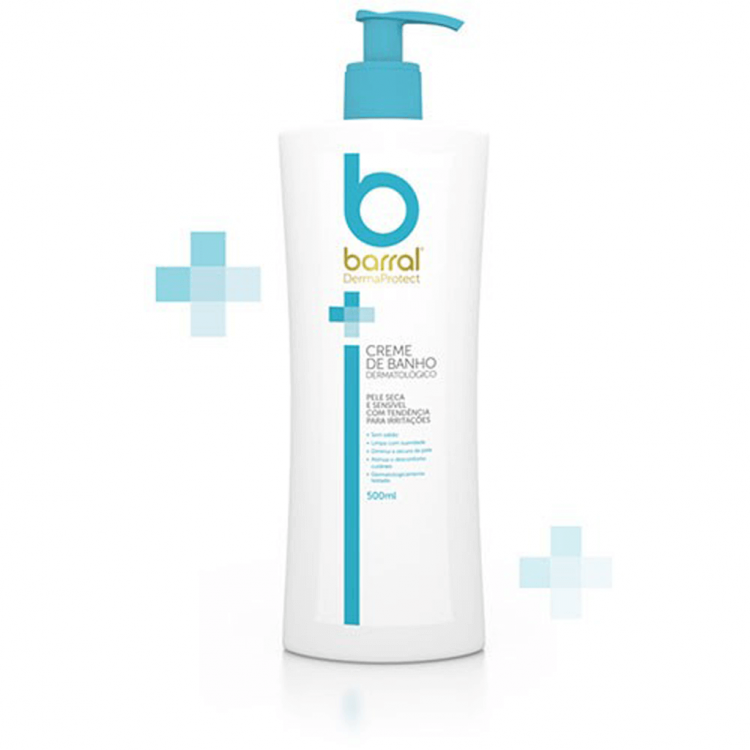 Barral DermaProtect Creme de Banho limpa com suavidade sem agredir a pele sensível. Benefícios: Limpa com suavidade sem agredir a pele sensível; Devolve à pele os lípidos que são eliminados durante a lavagem e que são necessários para a manutenção de uma barreira cutânea saudável; Diminui a secura da pele graças à presença de óleos vegetais puros que hidratam em profundidade, aliviando as irritações e o desconforto cutâneo; Indicado em crianças e adultos com a pele seca e sensível, com tendência para irritações, pele a repuxar ou com descamação. Indicações: Pele seca e sensível com tendência para irritações; Limpeza da pele.