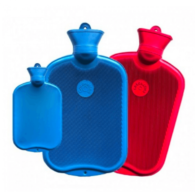 Saco de água quente fabricado em borracha natural, com capacidade de 2L, estriado de ambos os lados.