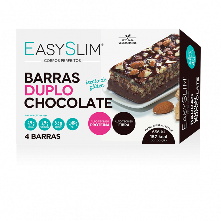EasySlim Barras proteicas Duplo Chocolate 42gr. Práticas e fácveis de transportar, podem ser levadas consigo para qualquer lado.