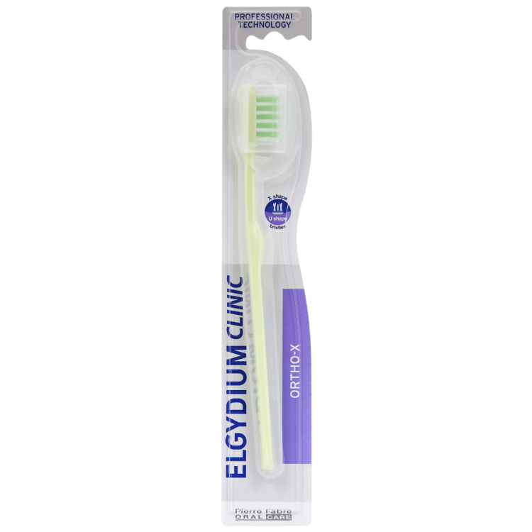 ELGYDIUM CLINIC ORTHO X é a escova ideal para adultos com aparelho ortodôntico. As suas cerdas em corte U e cruzadas em X nas laterais asseguram uma eficaz escovagem dos dentes e do aparelho.