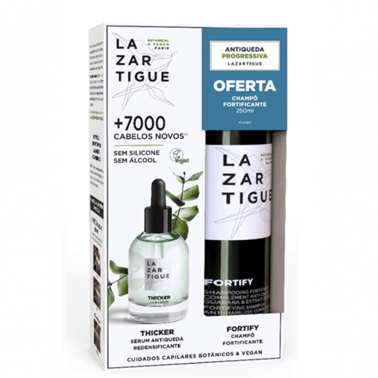 Thicker Sérum:Para queda progressiva. Em função da densidade capilar, aplicar cada dia 4 a 6 pipetas em todo o couro cabeludo seco e penteado. Duração recomendada: 3 meses. Fortify Champô:É importante distinguir a queda de cabelo progressiva da queda de cabelo reaccional. O champô fortificante vem completar um cuidado anti-queda.
