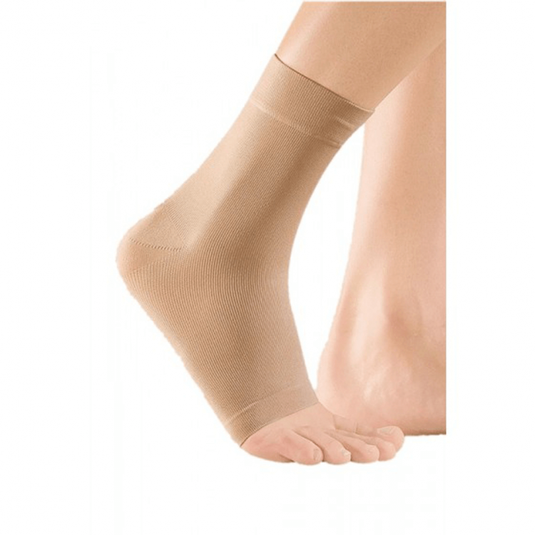 O pé elástico simples para o tornozelo não tem costuras e corresponde à classe de compressão II