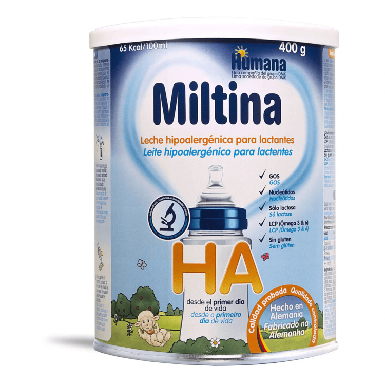 Miltina HA é uma fórmula para lactentes adequada como complemento do aleitamento materno ou como fonte alimentar única, desde o nascimento. Além disso, é uma fórmula hipoalergénica para bebés com risco acrescido de alergias. A partir do nascimento. Só Lactose. Proteína parcialmente hidrolisada. LCP e GOS.