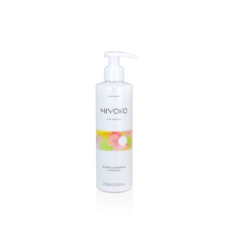 Myoko Creme de Mãos Botanica Symphony é um creme enriquecido com manteiga de karité e óleo de oliva, que ajudam a manter a pele das mãos hidratada e flexível e a prevenir a secura, promovendo uma sensação de pele suave e acetinada. Contém mais de 90% de ingredientes de origem natural, com perfume. Não contém parabenos.