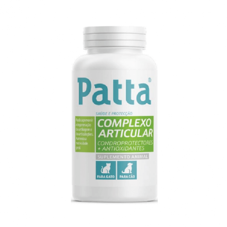 Para cães e gatos As substâncias presentes no complexo articular atuam de forma sinérgica reduzindo a progressão dos danos articulares, a dor e a inflamação das articulações. A sua fórmula completa favorece uma melhoria significativa da sintomatologia, um aumento da mobilidade e consequentemente uma melhoria da qualidade de vida dos animais. Patta Complexo Articular é recomendado em animais jovens de raças grandes/gigantes, animais geriátricos, animais submetidos a exercícios intensos (cães de desporto, cães de caça), em situações pós-traumáticas e patologias articulares (osteoartrite, reumatismo, displasia da anca).