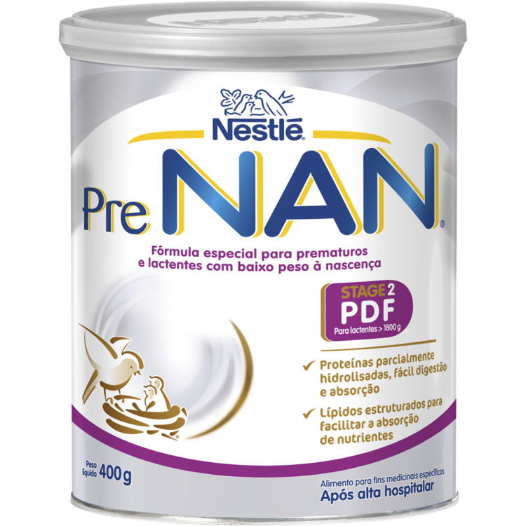 PreNAN Stage 2 PDF é uma fórmula especial para prematuros e lactentes com baixo peso à nascença após alta hospitalar. Descrição: PreNAN Stage 2 PDF é uma fórmula especial para prematuros e lactentes com baixo peso à nascença após alta hospitalar. PRE NAN Stage 2 PDF – Alimento Dietético Destinado a Fins Específicos Contraindicações: PreNAN Stage 2 PDF não está indicado para uso intravenoso. Não deve ser usado em casos de diagnóstico confirmado de alergia às proteínas do leite de vaca, intolerância à lactose, galactosemia ou mal absorção de glucose-galactose.