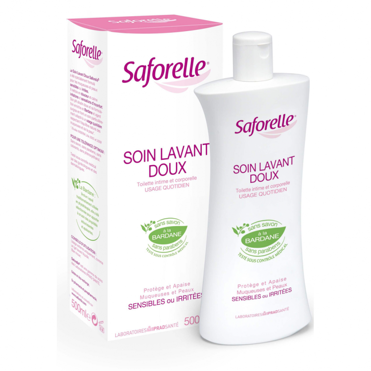 Saforelle Solução Hipoalergénica é um sabonete sem sabão, de pH ligeiramente alcalino (pH=8), que limpa sem ação detergente.