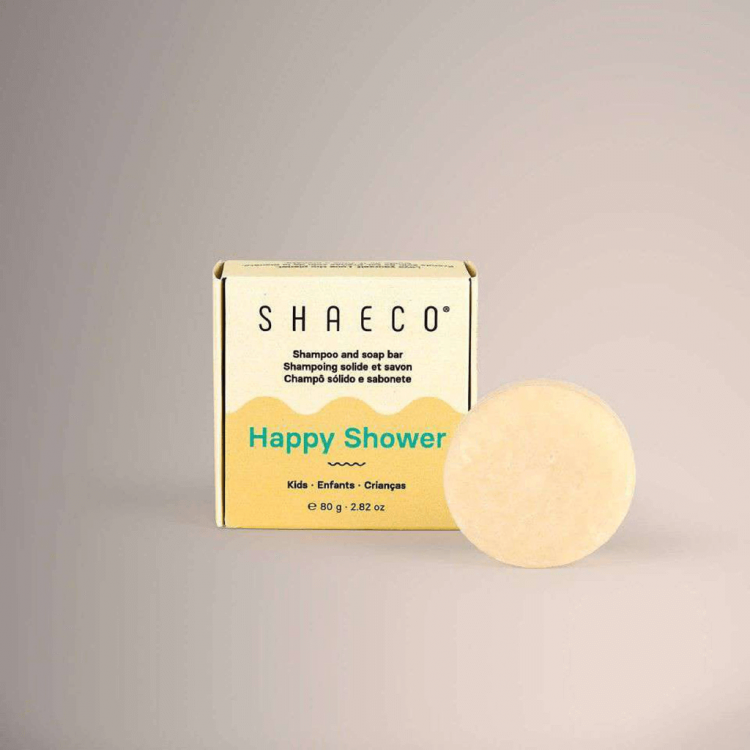 A hora do banho dos mais pequenos é um momento de descontração e diversão, e com o Happy Shower será melhor do que nunca! O Happy Shower é um champô sólido e sabonete 2 em 1, formulado especialmente para crianças. Os ingredientes são suaves e nutritivos, de modo a higienizar e proteger a pele e as mucosas sensíveis, assim como os cabelos delicados. Com um só produto, o cuidado do cabelo e da pele das crianças é mais prático sem deixar de ser gentil. A utilização de um champô sólido e sabonete 2 em 1 promove a autonomia das crianças no banho. Deve ser utilizado com supervisão de um adulto. Hipoalergénico e testado dermatologicamente. pH 5-7 93% de ingredientes derivados de origem natural