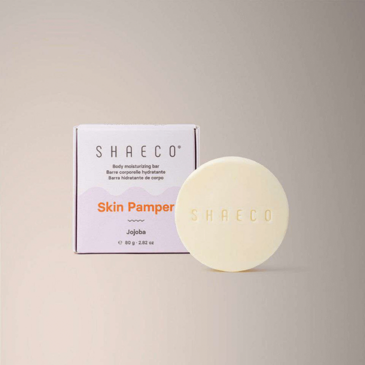 A barra hidratante Skin Pamper tem uma nova fórmula melhorada. Diz adeus à pele seca e desidratada com o Skin Pamper, um hidratante corporal sólido de fácil aplicação e absorção. Formulado a pensar no cuidado da pele, confere suavidade e brilho. Contém jojoba, óleo de coco e glicerina que ajudam a proteger, suavizar e hidratar a pele. Apesar de ser sólido, é um hidratante corporal em barra muito fácil de aplicar. Aplica após o banho, na pele seca. Primeiro, aquece o produto entre as mãos até sentires que a barra começa a deslizar. Depois, passa a barra diretamente no corpo ou espalha com as mãos e massaja. Como é de fácil absorção, não cola nem deixa a pele gordurosa. Vai deixar a tua pele macia, hidratada e levemente perfumada. Cuida da tua pele para onde quer que vás, sem risco de verter na mala ou no saco. Peso: 80g