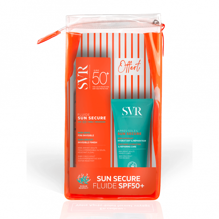 Coffret com protetor solar Sun Secure SPF50 + Oferta Apré Solaire, corporal de elevada proteção e oferta pós solar apaziguante, hidratante e reparador.