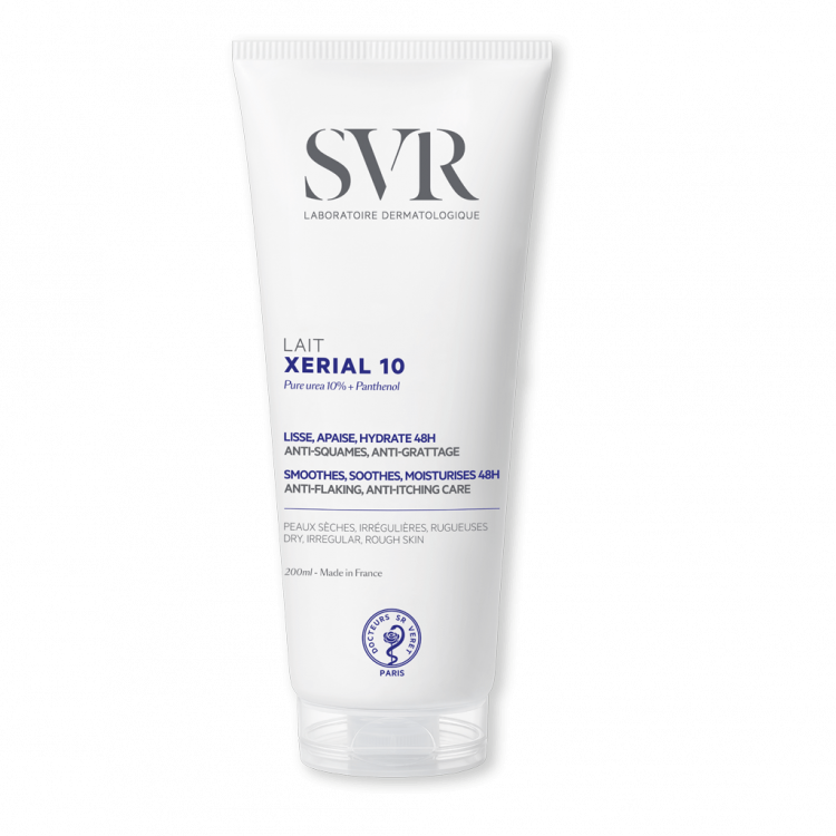Xérial 10 Leite Corporal é um cuidado concentrado queratolítico e emoliente de uso diário. Graças a ureia pura tecnologia patenteada, as células mortas são removidos e a pele hidratada intensamente durante 24 horas. Sua textura funde-se, não sendo gordurosa, é rapidamente absorvida para uso prático. A pele torna-se suave e macia. Uma alta concentração de agente activos dermatológicos para suavizar e hidratar a pele: - Ureia 10% puro: elimina as células mortas e hidrata intensamente; - Manteiga de Karité e Alantoína: protege e suaviza a pele.